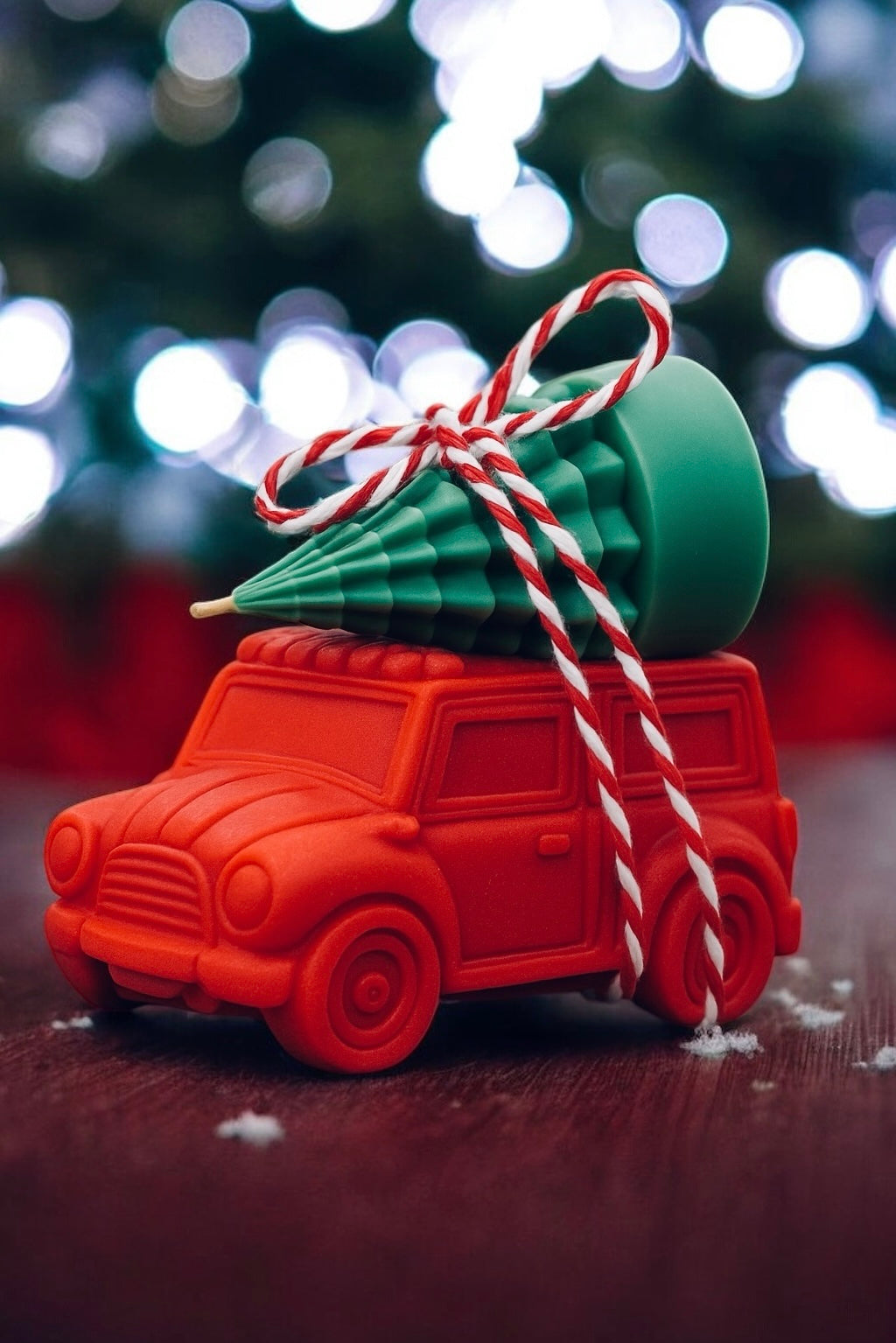 L'iconica auto vintage rossa contiene circa 200 g di cera profumata con oli essenziali puri. L'albero di Natale è realizzato con circa 25 g di cera di soia. Possono essere accese separatamente.