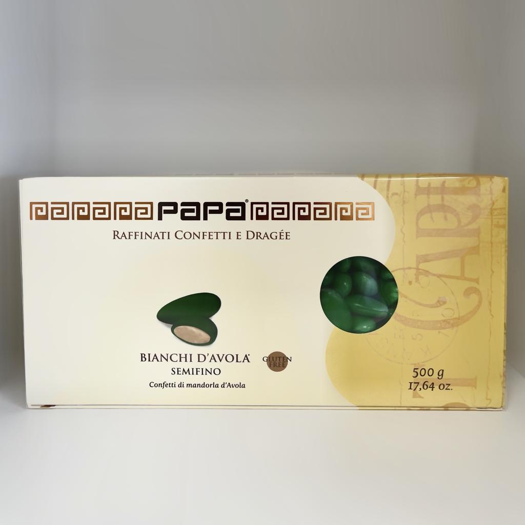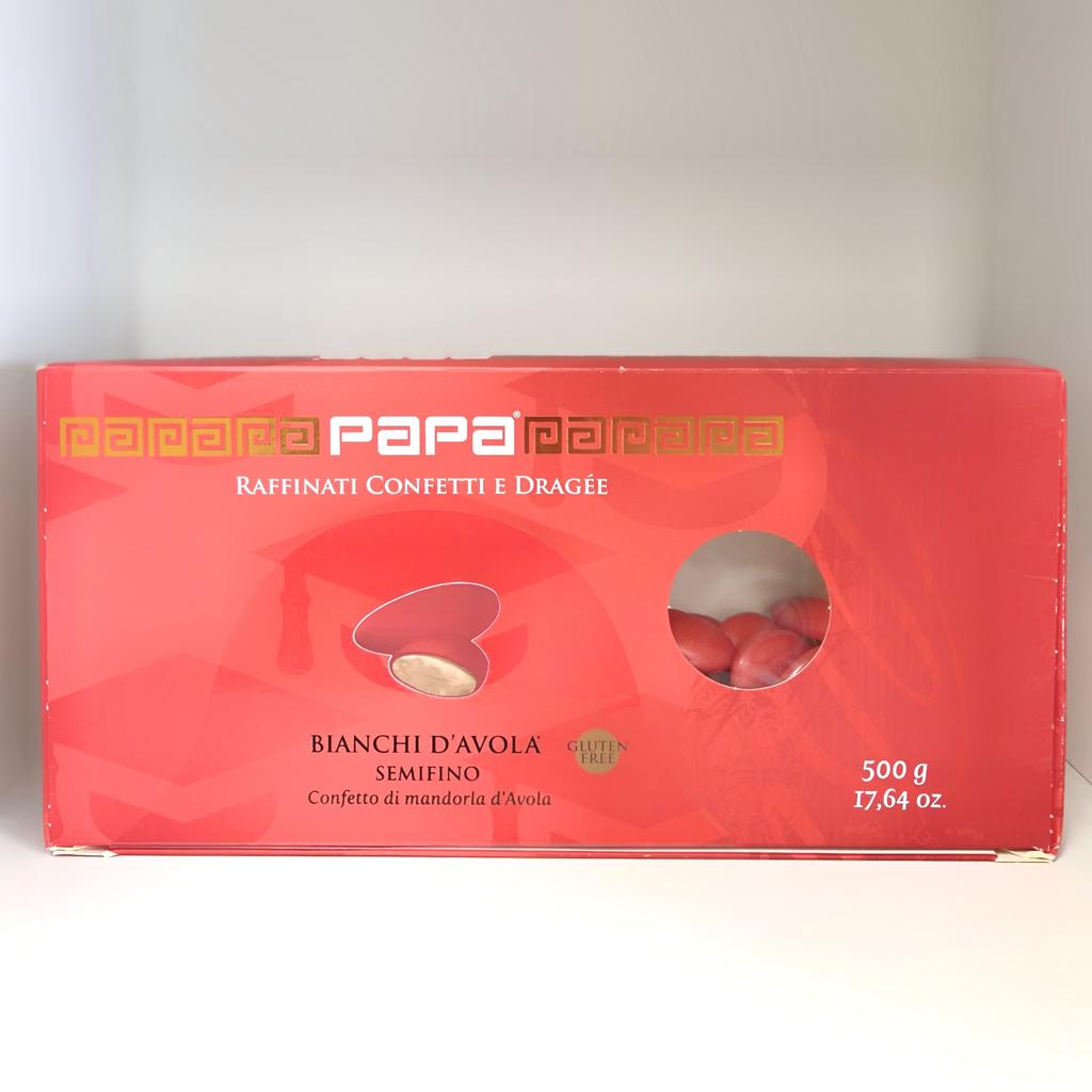 Confetti pregiati alla Mandorla d'Avola Semifino, calibro 34/35 confezionati in scatole da 500 g.